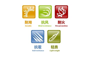 公司技術力量雄厚、設備先進,選用優質耐指紋鍍鋁鋅板為基材、高品質燒結彩砂、高性能丙烯酸樹脂,結合國際流行的彩石金屬瓦特性,經不懈努力、頑強拼搏,生產制造金屬屋頂系統材料--“特福特”彩石金屬瓦-金屬屋頂系統